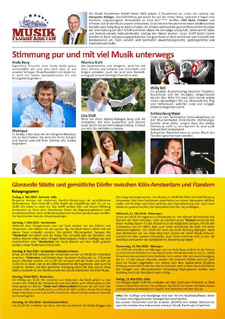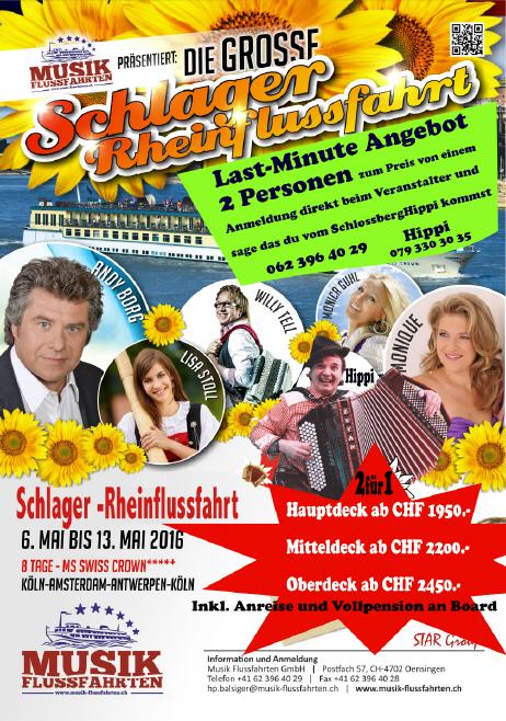 Musik-Flussfahrt Andy Borg - Monique - WillyTell Lisa Stoll - Monica Guhl und meine Kleinigkeit der Schlossberg Hippi
